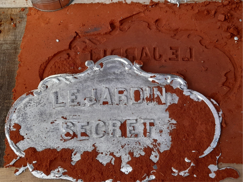 Mise en place du gabarit, réalisation du texte, coulée, démoulage.